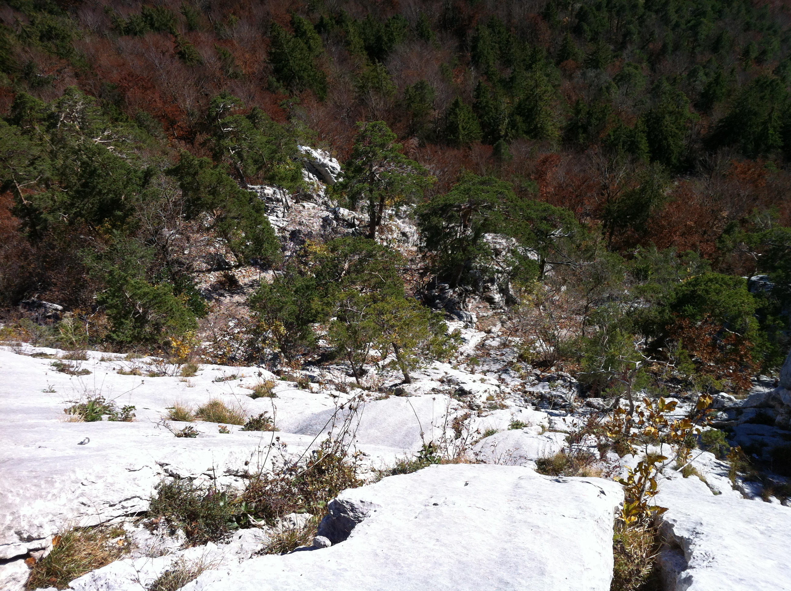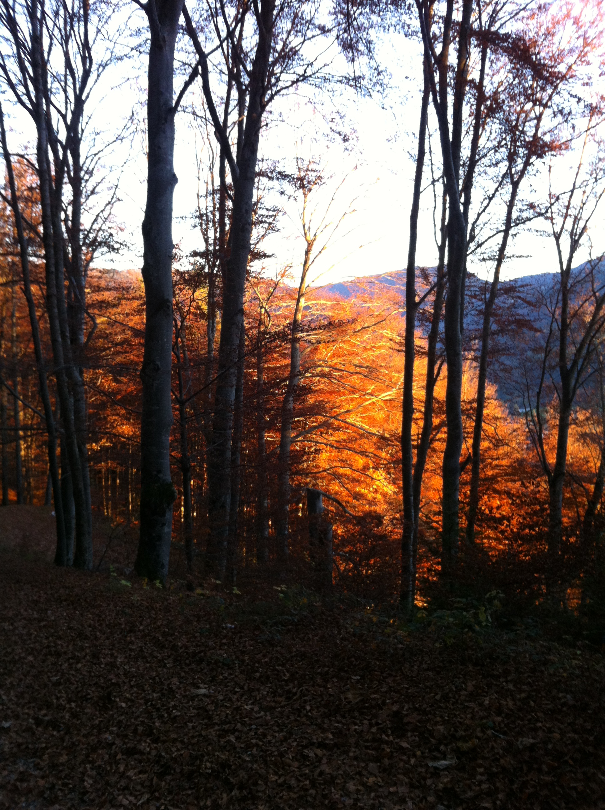 Abstieg, leicht steil durch den Wald und das viele Laub.