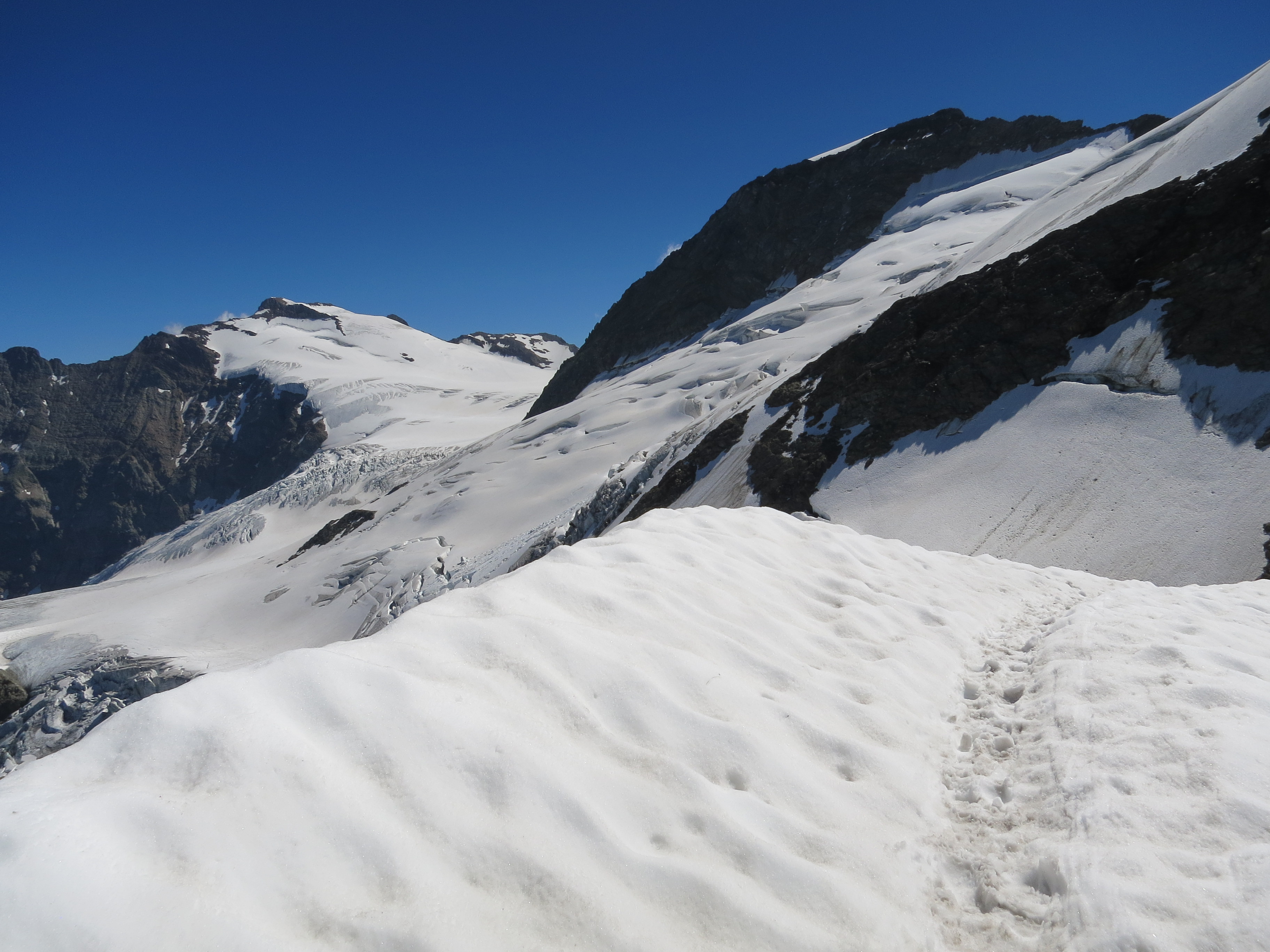 Wir sehen bereits neue Gipfelziele im Gwächtenhorn mit dem schönen Grat und der Fünffingerstöcke.