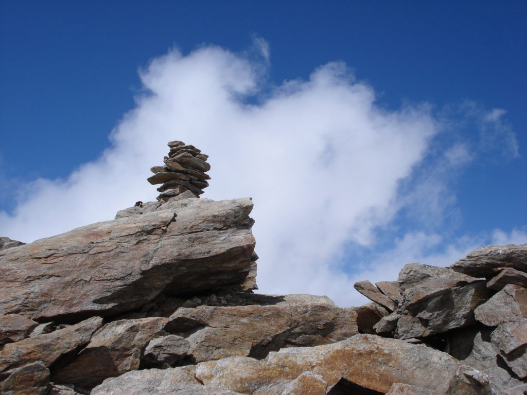 Wir liefen oben weiter richtig Norden, und plötzlich sah man den Gipfel vom Giglistock, das grosse Steinmännchen.