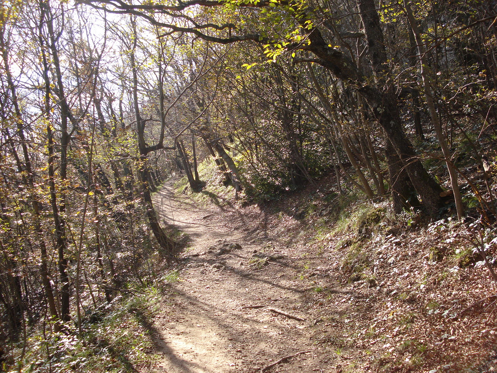 Zugang: Wir fahren direkt zur Mittelstation der San Salvatore Bahn in Pazzallo und parken dort. Von dort aus nehmen wir den Wanderweg zum Steig, er ist bestens ausgeschildert. Etwas später zweigt der Weg rechts ab und es geht steil bergauf. So werden wir schon mal gratis aufgewärmt, wenn man bedenkt was einem dort erwartet…