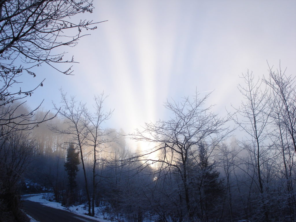 Als die Sonne voll und ganz aufgegangen war verliessen wir den Turm wieder und es ging auf fast demselben weg runter. Teilweise wählten wir den asphaltierten Weg, da es so glatt war und es sich nun mal abwärts weniger gut darauf gehen lässt.